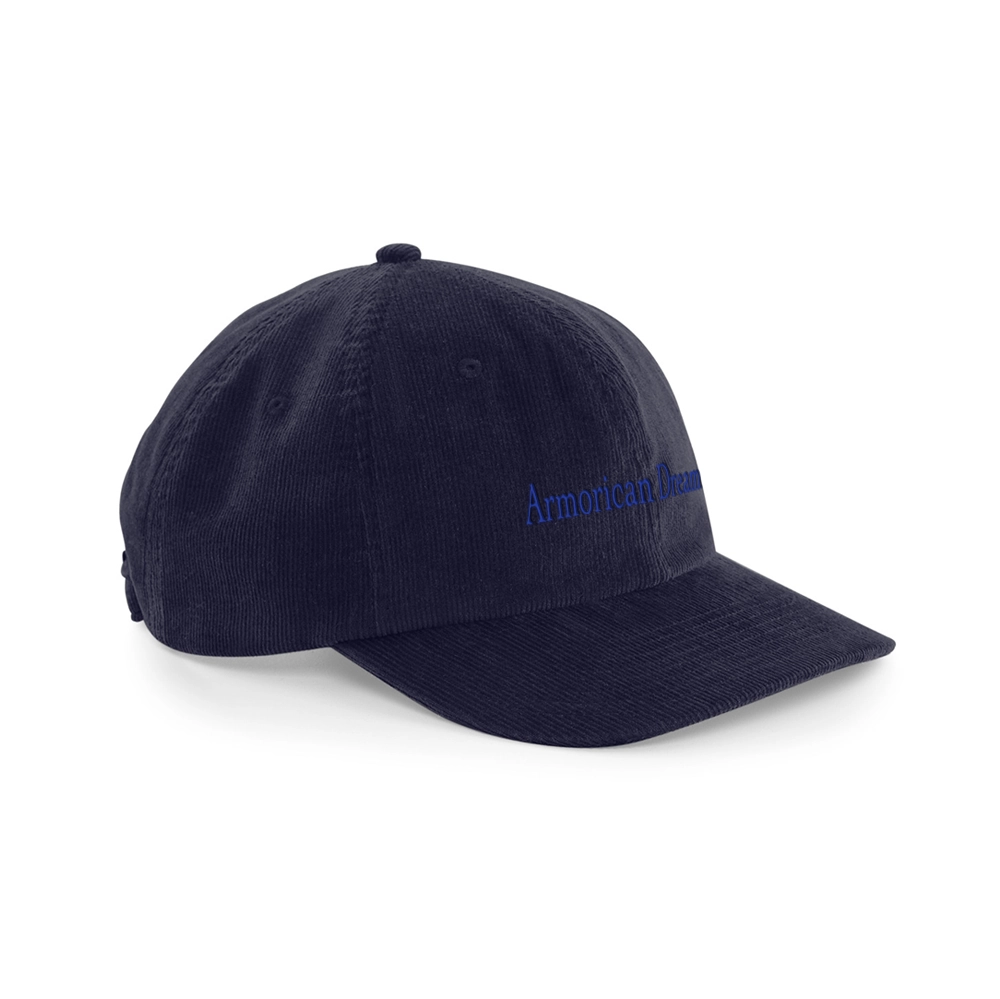 - Casquette 6 panneaux, en velours, en coloris noir (broderie blanche) ou marine (broderie bleue)