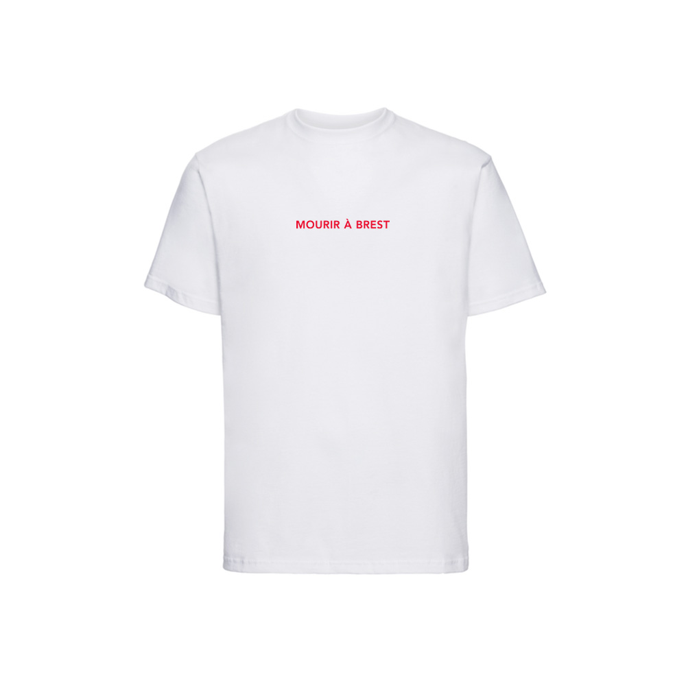 - Sérigraphie « Mourir à Brest » sur la poitrine, réalisée à Brest