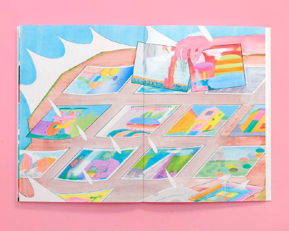 Si Neutre présente deux récits graphiques inédits, l’ouvrage rassemble surtout des peintures, dessins et collages couleurs, nous donnant ainsi à voir une facette plus méconnue de son oeuvre. Les travaux en couleurs rassemblées ici se posent comme un contrepoint au tumulte de ses mangas : des images silencieuses et légères, des collages pop échappés du chaos, des formes géométriques juxtaposées sur fond neutre.